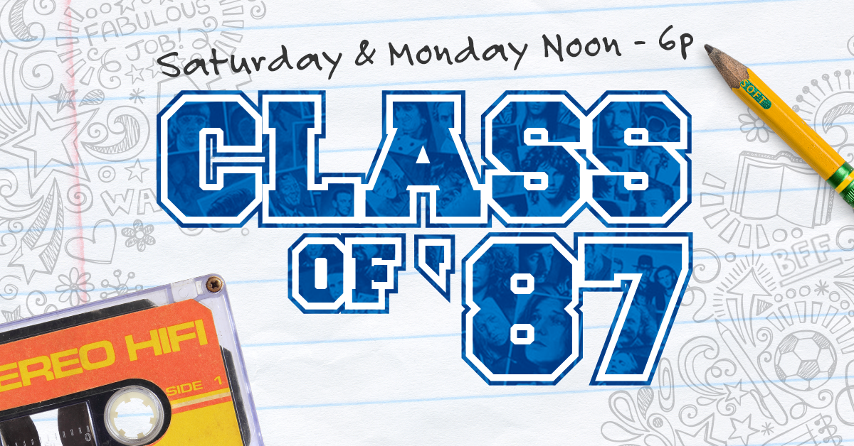 Join us Saturday & holiday Monday for The Class of 87 starting @ Noon. You’ll... Read More